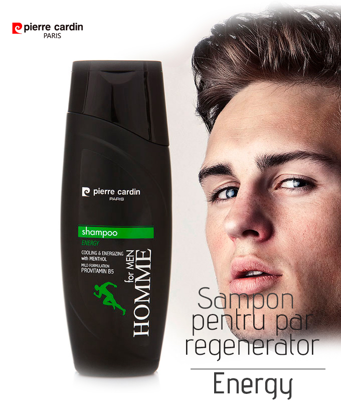 Șamponul energetic Pierre Cardin pentru bărbați datorită mentolului va împrospăta scalpul.